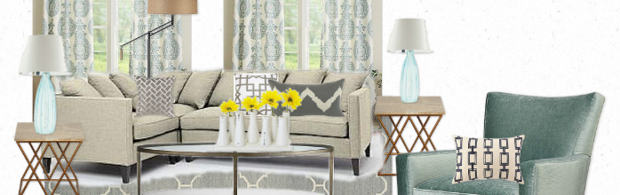 I recently ran across The Build Your Perfect Room Contest with One Kings Lane and knew it was the perfect fit for me. Many of you know that I provide interior design services to my Real Estate clients as I love helping them transform their purchases into desirable living spaces. In fact, I'm currently helping a couple downtown and will share their mood boards with you this week.For this One Kings Lane contest, I was challenged to include six items from their collection - which wasn't difficult at all as I've been known to make purchases from their site often.I