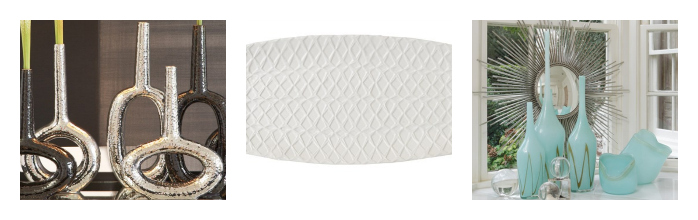 I'm down to the final stages on some projects, and all that remains are some great accessories. As I peruse all of my vendors sights, I could not help but get a little excited about Global Views. I'm about to place a big order to fill my retail space with some of these fabulous items, and many of them retail for under $50! LOVE these Ocean bottles! The color and the gold detail are amazing. The keyhole silver vases are simple, but stunning! The Wooster Street Platter is a must. Love this little sea star vases, which come in gold, silver and