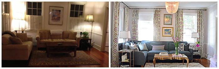 This post is way long overdue because this was my FIRST paid project EVER that I completed almost a year ago! Oh the shame of getting it together, but there's lots of pride because I truly love the way this room turned out. Let's start from the beginning. I was hired by a previous real estate client who was recently engaged and moving into her fiance's downtown home. She told me to help take the bachelor pad to something they could both enjoy. So, I was excited and nervous. First thought was, how am I going to get this total