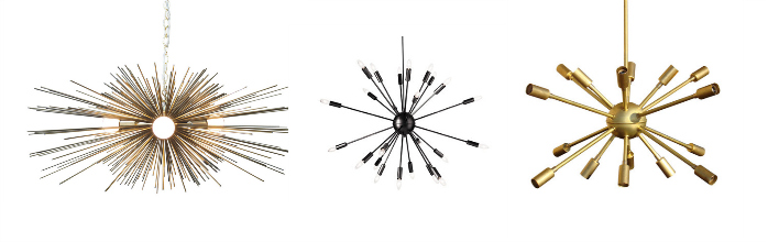 I'm going straight up Sputnik these days. And, why wouldn't I? They have to be some of the most interesting light fixtures available. I think they are truly ceiling art. Whether it's your entry, kitchen, bathroom, laundry room or bedroom, these fun chandeliers add intrigue and glamour to your space. I decided to round up some of my favorite sputniks (or sputnik-like) and starburst chandeliers. And, don't fret