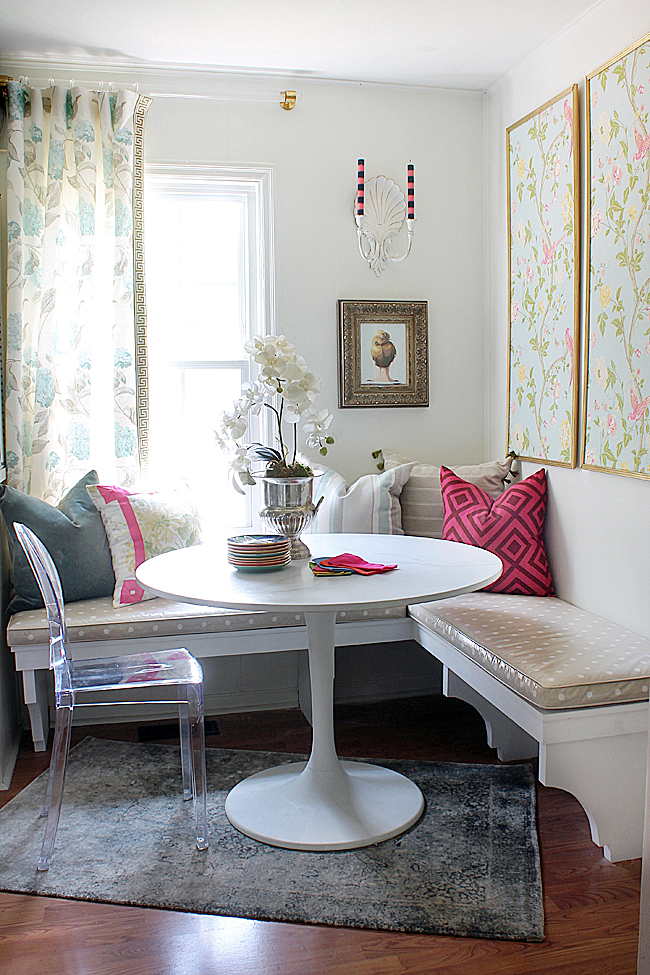 I find inspiration from many things like magazines, a vintage rug, or even just the need for something. For instance, when creating our banquette in the kitchen, the need for a dining area was huge! So we used that small space as a jumping point to create one of our favorite little nooks.