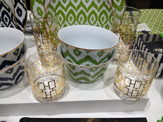| Gold cocktail glasses & Ikat plates – so FUN! |