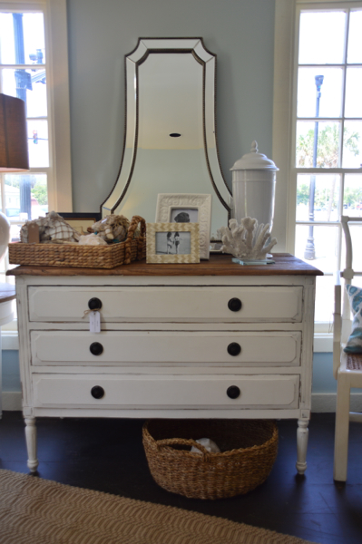 How great is this dresser and mirror? It would be a fantastic entry piece. I just want to take this whole ensemble home with me.