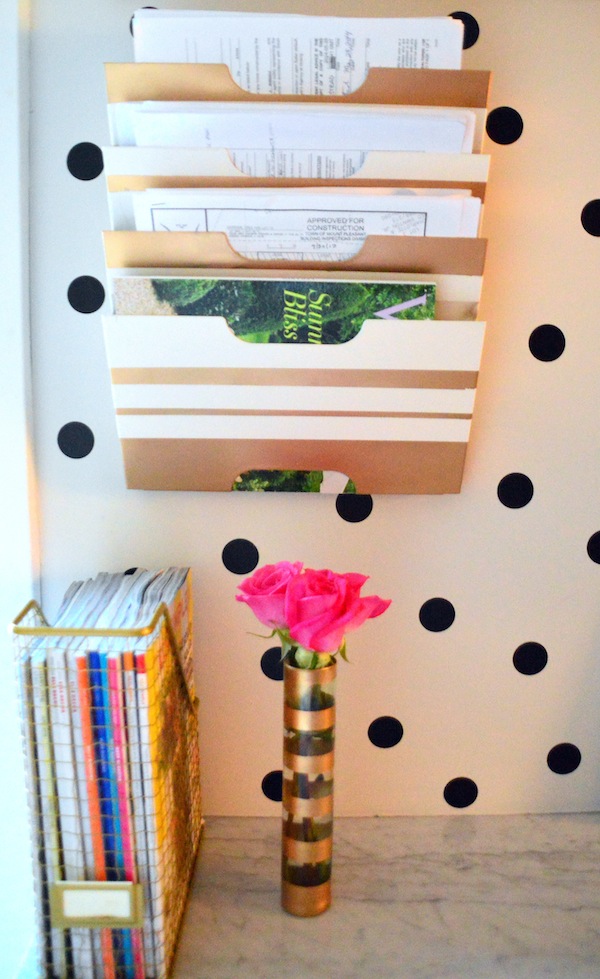 I have the same magazine rack and I also DIY-ed it last year. I love that you chose gold to make it pretty! Exellent job, Krystine 🙂 Xo