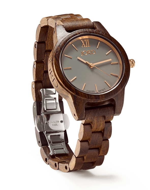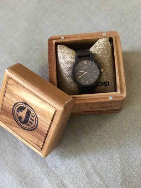 I have been crushing on Jord Watches for some time. I have several friends who own them and have always wanted one for myself. So, when my watch arrived at my door I was extremely excited! My boys loved the packaging and presentation of the watch. It is a beautiful gift! I wanted a darker watch and fell in love with this one with the dark face and gold. When I opened the box, I was not disappointed. It really is a beautiful and unique watch. It’s lightweight, sustainable and just so different from other watches.