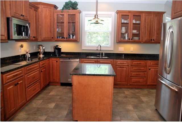 - The well-designed kitchen has maple cabinets, an island, granite counter tops, stainless steel appliances, a work desk and plenty of storage and space, including a pantry.