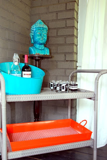 Orange Tray on bar cart: Home goods