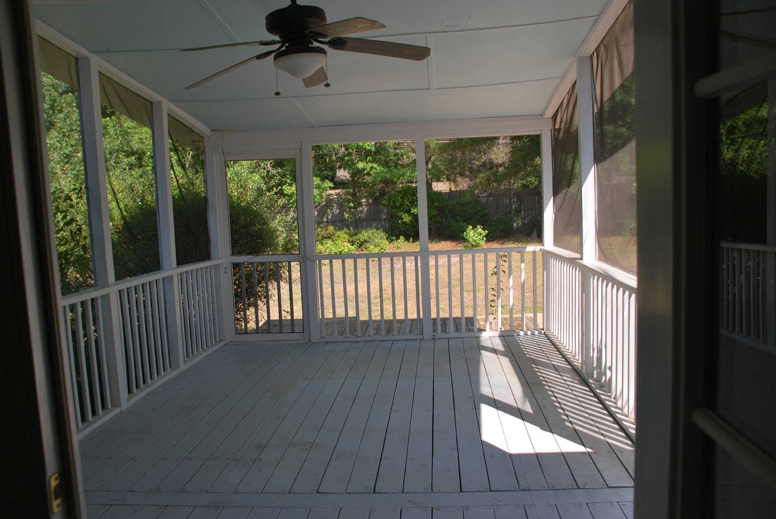 So we began our outdoor home remodeling project and added beams, beadboard, recessed lighting and, of course, a fan.